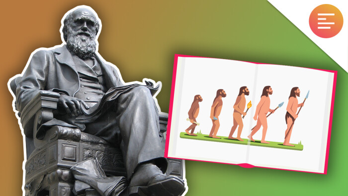 Charles darwin skriver bogen "arternes oprindelse", der beviser, at mennesket stammer fra aberne, og ikke adam og eva, som kirken påstod.